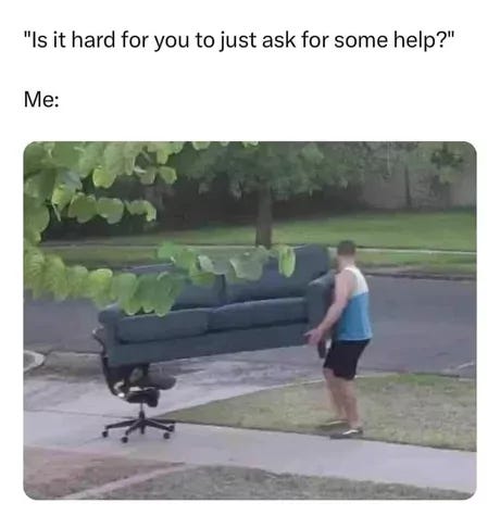 Our last spring in Brooklyn, after we witnessed someone be shot on our way home from the train, my nervous system set on fire and everything that has ever happened to me came up and swallowed me whole. My memories of this time are walking around Herbert Von King park trying to breathe and never fully being able to catch the whole breath. It would get stuck in my lungs, my body’s way of sounding the alarm since my brain and body were existing on different planes. Mental Health Social Media might call this “panic”. I started reaching out to find a therapist because I couldn’t sleep and couldn’t breathe and felt like I was going to die most days. I met with one who asked me “How often do you feel like you are outside of yourself? Like you are watching your life happen?” and I said… “always? most of the time?” and she said she was so sorry for all that I was dealing with but that my situation was too intense for online therapy and that I should find an in-person intensive support system. I respected her having boundaries, but do you know how hard it is to ask for help? Especially how hard it is to ask for help for someone like me? When the meme below goes around, several people slide it into my dms.